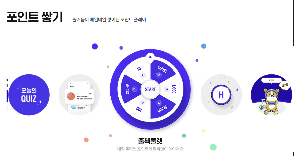 아직까지도 가입하지 않았다면 하루라도 빨리 지금 바로 가입하는 것이 좋다. 매일 매일 적립할 수 있는 방법들이 다양하게 준비되어 있는데 오늘의 퀴즈, 룰렛, 게임 등을 통해 H포인트 모을 수 있다. Hpoint 만보기형 앱테크 수단인 포인트워크를 통해 젤리를 모을 수가 있는데 젤리를 다시 hpoint로 교환할 수 있다.